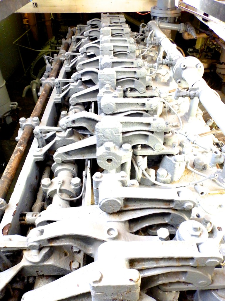 What is interesting is that the propulsion motor in Luna is mounted on the very forward end of the engine room, between the forward two fuel tanks. A long shaft spans the entire length of the engine room. Click for larger. Will Van Dorp photo.