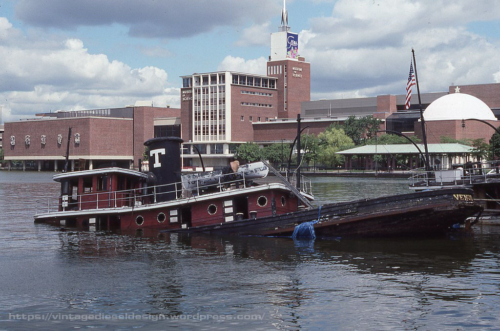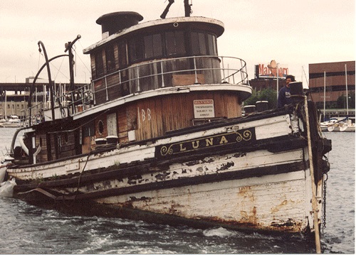 By the early 1980’s, plans were in place to save the Luna. She was listed on the National Register of Historic Places in 1983. She and sister Venus were back together in the Charles River Basin, and Luna was being used as an office for the Terra/Marre Research & Education Society, her then owners. The Luna was under restoration and open for tours, and was still operational with one engine running, although she still sat unused. By the late 1980’s, the tug was now owned by/under control of the Metropolitan District Commission.