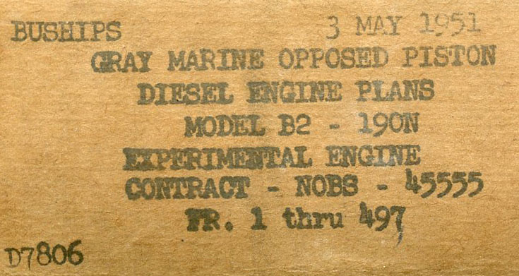 Yup, it is indeed an opposed piston engine, and an experimental US Navy engine at that.. And I can not find one single thing about this engine online, anywhere. Gray Marine is pretty well known for the work they did during WWII, specifically with the Detroit Diesel 6-71. Gray Marine would take engines built by Detroit, and convert them to marine use, one of which being the 64HN9 – a 6-71 with a high output governor, used on the Higgins Boat: The LCVP, or Landing Craft Vehicle Personnel.