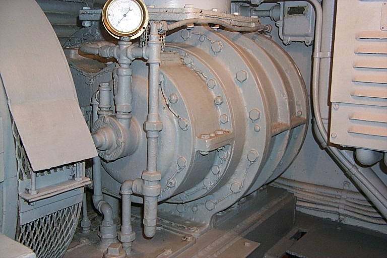 To digress extensively – WWII submarines had two systems to blow their ballast tanks – 3000-PSI stored compressed air reduced down to 600 PSI to start the surfacing process and 10-PSI low pressure air supplied by blowers to finish the job once a submarine surfaced. It was this low-pressure job that either Roots Blowers or centrifugal blowers were utilized. Another interesting use was that when a sub is submerged, various tanks are vented inboard the sub, raising the internal pressure of the boat several PSI above atmospheric pressure. If the hatch were immediately opened, the rush of air was known to launch sailors overboard. Instead, the hatch between the conning tower and control room would be shut, the boat surfaced and the bridge hatch opened. While the captain checked to see if the coast was clear, the low-pressure blower is started finishing the blow of the ballast tanks and reducing the excess air pressure inside the rest of the boat.