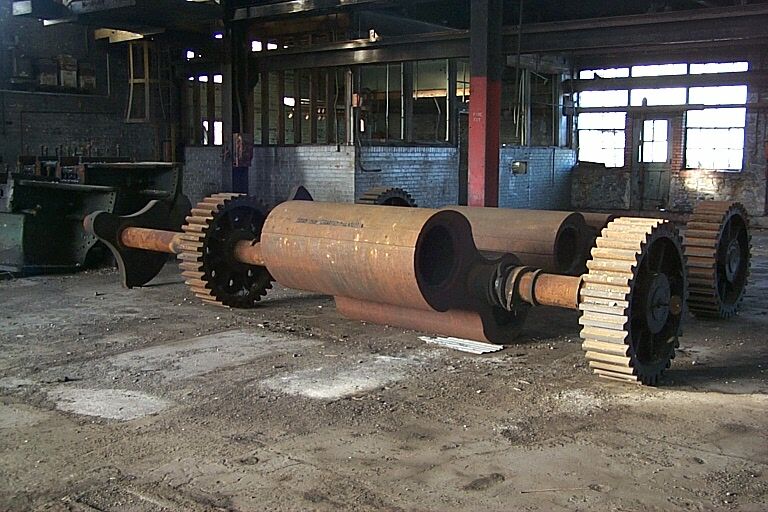 Very distinctive, two-lobed Roots Blower rotors – look carefully and you will see counter-weighted steam engine eccentrics on the end of the rotors. Inside the same building were the matching horizontal steam engine cylinders for driving these rotors (I took photos but the passage of 16 years has lost those). I later learned that blast furnace blast supply was one of the first uses of Roots Blowers.