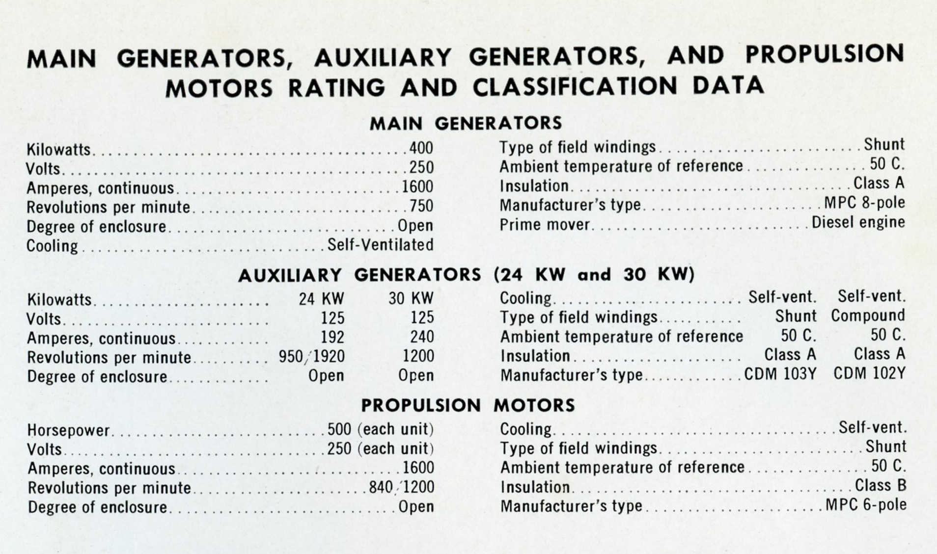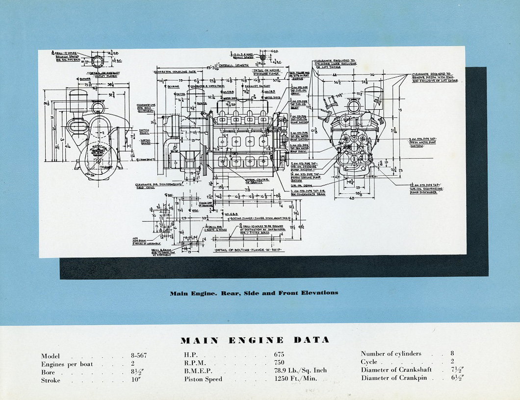 Along with the 24kW shaft generators, the tugs each had a single Detroit 3-71, which drove a 30kW generator. The 71 was also a newly introduced engine in 1938. Click for larger.