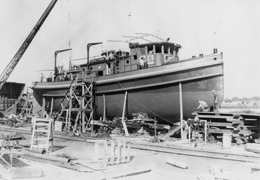 In 1936, Moran was operating a fleet of around 40 tugboats, from small Canal tugs, to larger ocean going and everything in-between. A new era opened in the fall of 1936 – The Marie S. Moran was launched. She would become Moran’s very first diesel powered tug.