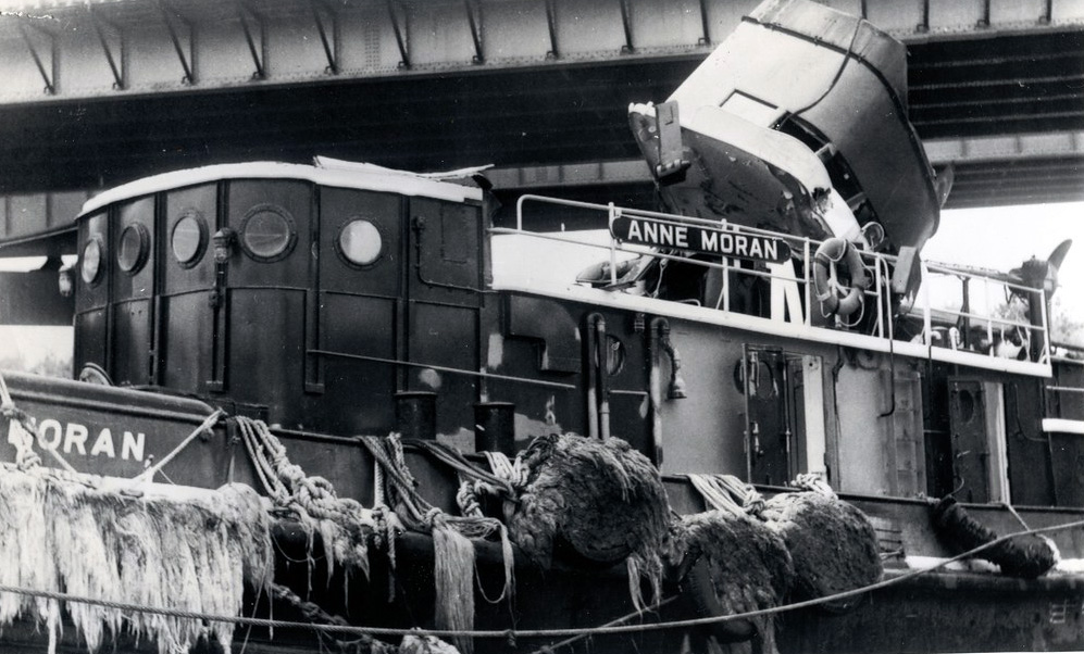 Unfortunately, working in the canal with a retractable wheelhouse had its downfalls. You need to pay attention! (To quote Buford T. Justice in Smokey and the Bandit: “Duck, or you’re gonna be talkin’ out yo ass!”) The wheelhouses essentially floated in a pocket, with some very basic guiderails. So when the captain forgets to drop the wheelhouse, the bridge is usually going to win, as what happened in 1965 to the Anne. Numerous canal tugs were decapitated over the years, but because they were so simple, the dents were pounded out, wires rerun, and back off to the races they went. I spent a few years working on a canal tug, and its an all hands on deck operation spotting for obstructions, especially high tension wires at night. Click for larger. VDD collection.