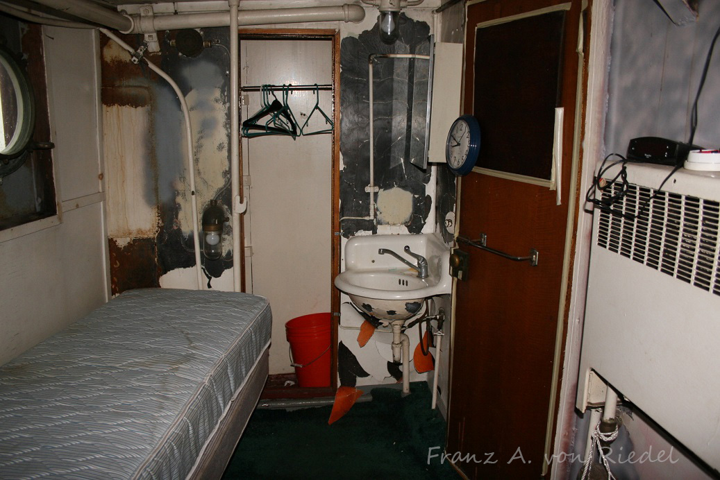 By the time smaller companies have these older boats, the staterooms are usually pretty tired – as often times the tugs are used as day boats, meaning no full time crews are living on the tug, which also means that maintenance starts to dwindle. For a canal tug however, these are some pretty big rooms! Click for larger. Photos courtesy of Franz A. von Riedel.