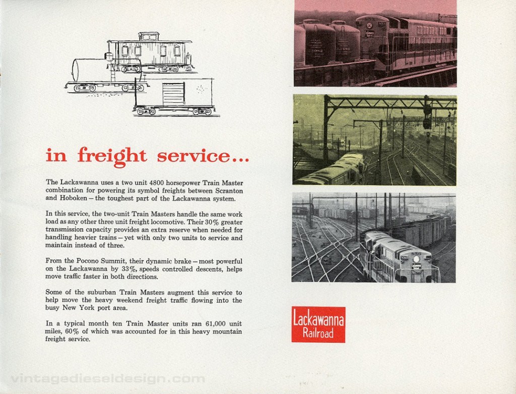 A few years ago, our local bookstore took in a large collection of railroad books. In rummaging, I stumbled upon an old Fairbanks-Morse promotional booklet promoting the Delaware Lackawanna & Western’s new FM H-24-66 Train Master locomotives, which were at that time the highest horsepower locomotives being offered. DL&W being a favorite railroad, of course I needed it!