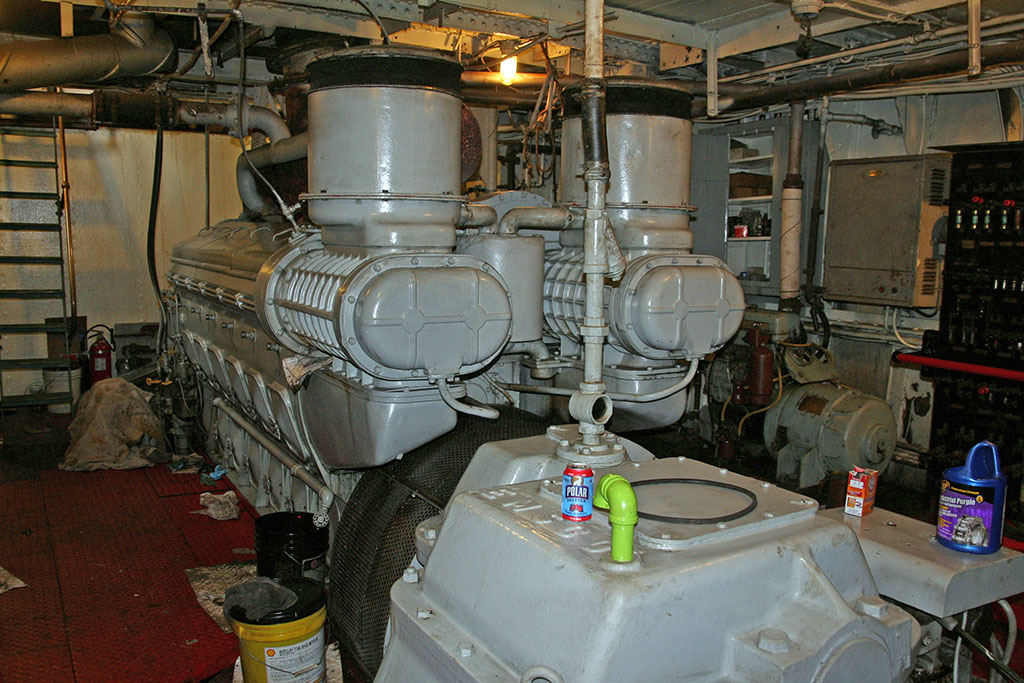 McAllister would repower the tug with a WWII surplus LST package – a 900HP EMD 12-567ATLP, with a Falk (Falk designed, however several contractors during the war built them, including Esco and Lufkin) reverse-reduction gear. This was one of the most common tug repower packages used after WWII, and I am slowly working on a large post about them.