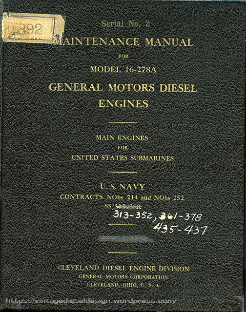 Something on my wish list for several years has been a Cleveland Diesel issued 278A manual, specifically for a submarine. I was able to track one down earlier this year, and best of all, it is specific to the engine in the Cornell.
