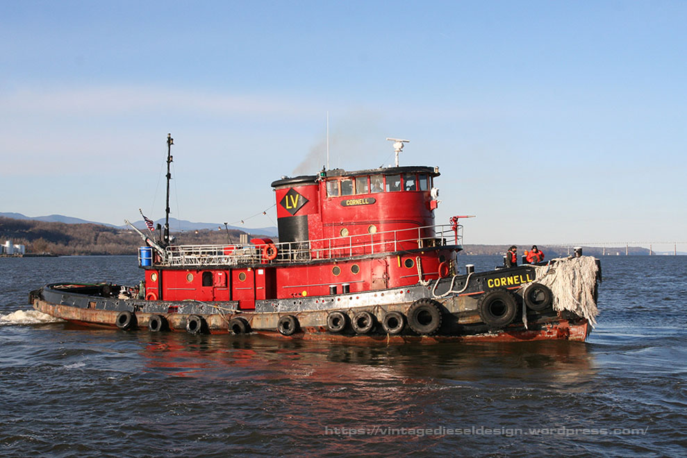 In 1948, the Lehigh Valley Railroad put in an order for a quartet of tugboats. The tugs, designed by TAMS Inc. Naval Architects under Richard Cook and Joseph Hack, were a typical 106’ harbor tug. I will get into this more in a future topic (or whenever I get my damn book finished!). The Diesel-Electric tugs were powered through a package put together by General Motors Diesel – Cleveland Diesel main engine, Detroit Diesel generators, Allis-Chalmers main generator, Westinghouse propulsion motor, and electrical gear provided by Lakeshore Electric. Construction of the tugs began in early 1949 at Jakobson Shipyard in Oyster Bay, Long Island. The tugs would be named the “Wilkes-Barre”, “Hazleton”, “Cornell”, and “Lehigh”. The 4 tugs were identical, with the exception that “Cornell” and “Lehigh” had wheelhouses slightly lower than the other pair for serving the isolated terminals on the Harlem River.
